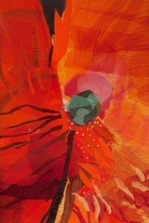 The University of Kentucky Healthcare System has a world class art collection. I was thrilled when Paessagio I was purchased to be included in that collection. This fabric collage is composed of commercial and vintage fabric and thread and depicts a typical Umbrian countryside scene. At the same time, UK Healthcare purchased another fabric collage “Poppy”, a piece that had been previously chosen for the cover of the August/September 2014 issue of Quilting Arts Magaziner.